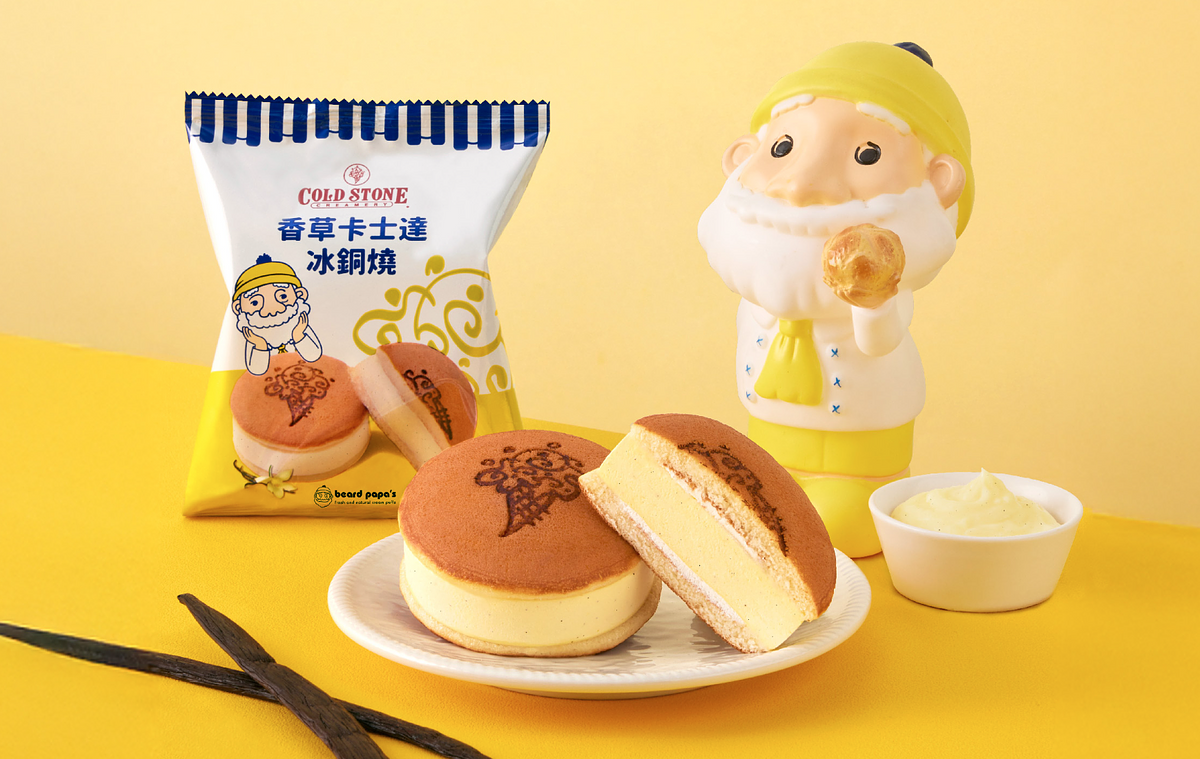 COLD STONE 攜手日本 No.1泡芙專賣店《beard papa’s》推出「香草卡士達冰銅燒」,使用 beard papa's 卡士達內餡特製而成,更添加香草籽,充滿奶香與香草香氣,口感濃郁而細緻,再搭配Q彈柔軟的銅鑼燒餅皮,每一口都是滿滿的幸福滋味!
