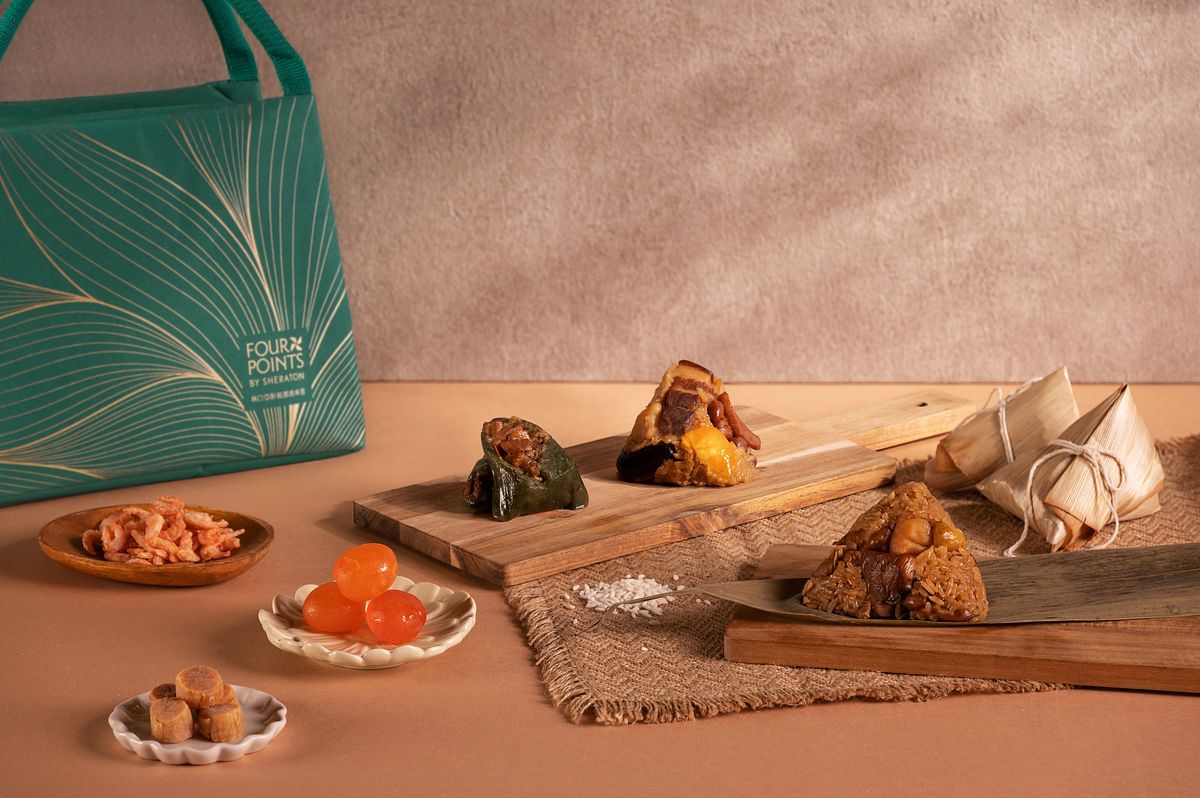 林口亞昕福朋喜來登酒店今年由 2F 聚味軒中餐廳李聖涵主廚帶領餐飲團隊們推出【昕福粽意】精緻粽禮,包含「聚味海陸八寶粽」,結合珍饈海味、融合豐富食材層次,飽滿鮮香滋味十足;「古早味艾草粿粽」,承襲傳統工法,揉合艾草的天然清香與粿粽的綿密口感,喚起記憶中的古早風味;「杏菇雞肉珍珠粽」,精選杏鮑菇與嫩雞腿肉入餡,搭配珍珠米的軟糯香甜,展現溫潤細膩的口感層次。各式粽款皆以細膩講究的調味比例,尾韻香氣各有千秋,為今年端午獻上一場美食盛宴。端午保溫提袋以時尚典雅的石墨綠為主色,融入粽葉意象,搭配金色葉脈紋路,展現精緻高雅質感,無論送禮或自用皆相宜。