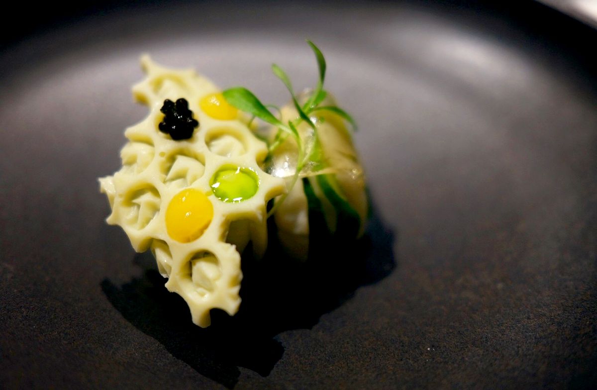 新晉二星餐廳「A」,白色為主調的空間內,點綴著色彩鮮艷的花卉和畫作,主廚黃以倫打造十道以上的品嘗套餐,餐點以法式風格為主,同時融入亞洲元素。每道菜餚選用上等食材,如澎湖明蝦、鮮貝與小牛肉,烹調細膩,與擺盤精美,從開胃小點到甜點,也令人印象深刻。