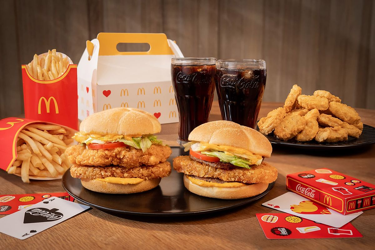 購買分享盒加點指定飲品買一送一,或透過歡樂送訂購分享餐,即可免費獲得可口可樂®聯名限量「麥麥同樂撲克牌」,精美設計的撲克牌融合麥當勞及可口可樂®經典元素,好看又實用。連假期間親友相聚,享受麥當勞分享盒 / 分享餐的同時,也可藉由撲克牌增添互動樂趣,讓感情更加溫。