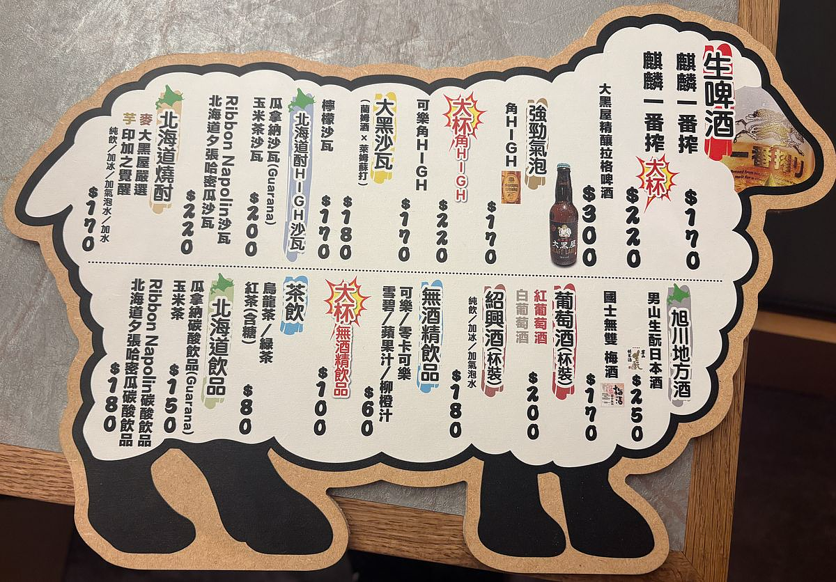 旭川成吉思汗 大黑屋菜單