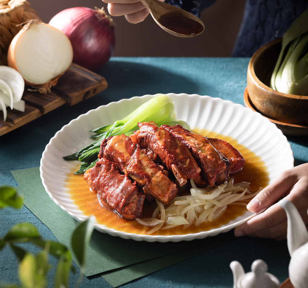 一道充滿家鄉溫度的升級版家常菜。我們用特製老滷醬汁將溫體豬肋排靜置發酵 12 小時,再以「先炸後滷」的手法鎖住肉汁。軟骨 Q 彈、肉質入口即化,帶給你滿滿的家鄉幸福感。