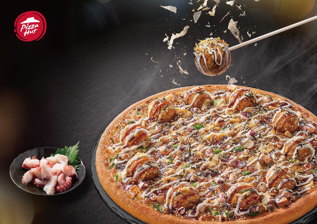 只有必勝客才能超越必勝客,在每一片比薩都放上一顆章魚燒的「丸勝日式章魚燒比薩」,讓必勝經典美味再升級!舞動的柴魚片與濃郁日式照燒的香氣令人食指大動,一口咬下外酥內軟的章魚燒,迸出章魚的鮮味,彷彿瞬間穿越到日本街頭!「丸勝日式章魚燒比薩」將率先於六都50間門市獨家限時開賣,提供大比薩、小比薩與個人比薩三種尺寸選擇,外帶單點大比薩嘗鮮價更只要420元,立刻揪團開吃,體驗每一口都大大滿足的日式風味!