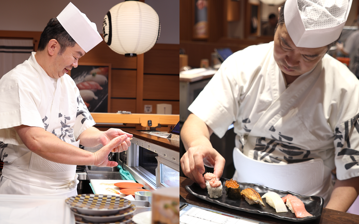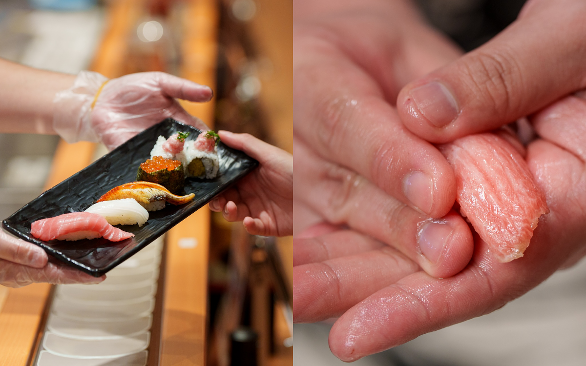 提起台灣的迴轉壽司品牌,大都依靠機器捏製、中央廚房預製,但合點壽司卻在迴轉壽司市場中,堅持以最費力的「職人手握」及「現點現握」形式進軍台灣。合點壽司強調壽司真正的靈魂來自「握」的技術,職人會依據不同食材、溫度與濕度調整捏製力道,使醋飯在入口時能以最適度的方式化開,呈現魚料與米飯最均衡的風味。這些極細微的口感差異是機器所無法取代,也造就合點壽司像迴轉壽司形式,卻更接近 Omakase 的頂級壽司體驗。