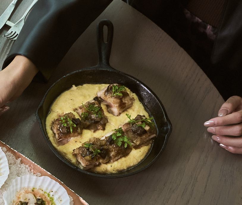 靈感來自秋冬的北義皮埃蒙特(Piemonte),以香煎雞腿結合牛肝菌與蔬菜慢火燉煮高湯。濃郁的菌菇香氣與的泥土氣息交織,重現義大利北方山林的秋冬風景。這道料理溫暖、厚實,象徵旅程從北方的群山出發。