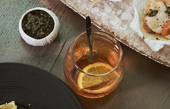 以義大利經典開胃酒 Aperol 為靈感,融合氣泡葡萄酒與草本柑橘清香,呈現義式午後的明亮調性。酒色如夕陽、氣泡如樂音,在口中綻放愉悅節奏。這杯「橙焰落日」為嘉年華畫下輕盈尾聲,也象徵義大利人擁抱生活的浪漫步調。