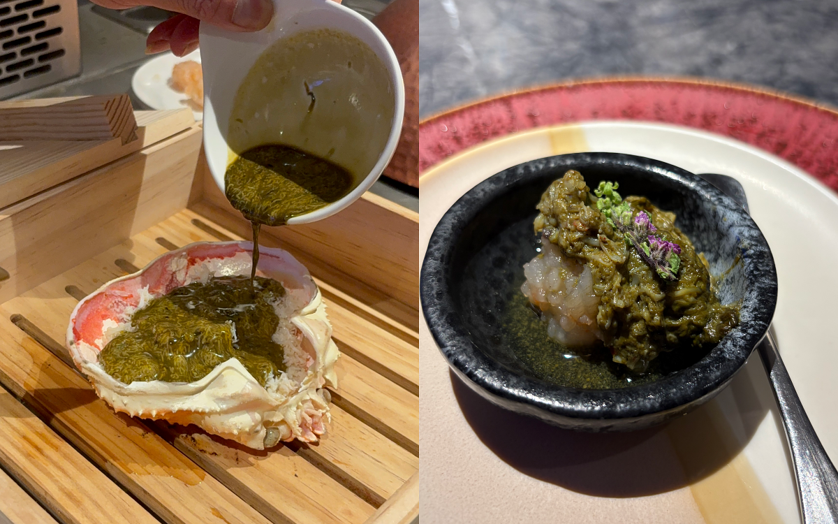 500盤推薦餐點升級優化提升 Umami 採用活體北海道松葉蟹,蟹肉肉質肥嫩飽滿,淋上雞湯清蒸,提升蟹肉的鮮味。