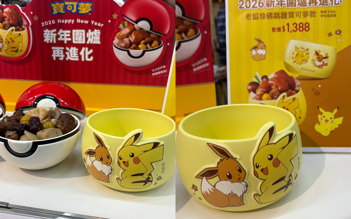 聖誕跨年後就要迎接農曆新年,新預購開賣2款「老協珍佛跳牆寶可夢款」,隨盒附造型甕:「精靈球造型」與「皮卡丘&伊布造型」,即日起開放預購,將於2026年1月14日(三)開始取貨。