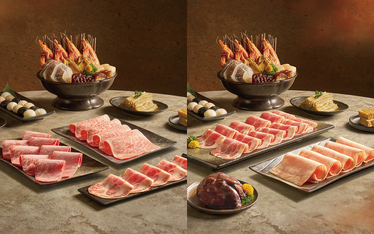 2026年菜系列嚴選國內、外海陸頂級食材,從日本空運直送的活體鱈場蟹、澳洲活體龍蝦,到日本宮崎A5和牛,精選全球卓越食材,堆疊視覺與味覺的享受,再融入「以人為本」的品牌精神,期盼將家的溫暖、團圓的深情與歲月的回憶。「尊爵海陸組」空運來台的極品日本活體鱈場蟹,當日新鮮宰殺拆蟹,專業分解蟹身每個部位一應俱全,最大程度保留鮮度與原味。濃郁的蟹膏更可以融入湯底,加入精選白米飯後化身為橘色招牌黃金粥,寓意金馬招財、財運滾滾來,為新春團聚增添富足與吉祥之意。「豪華海陸組」嚴選當日新鮮處理的澳洲活龍蝦,保留龍蝦膏的濃郁精華,涮煮後品嚐新鮮龍蝦肉的彈牙口感,輕鬆重現店內用餐的美味饗宴。結合南非活體鮑魚與日本宮崎A5和牛等海陸食材,成為新春圍爐桌上的門面之選,寓意馬年騰飛、團圓美滿。「特饌海陸組」適合小家庭、拜年送禮的組合,包含日本宮崎A5 和牛、美國特選Prime牛小排和台灣究好豬梅花,搭配澳洲野生國王蝦與奢華黑玉海參等臻品海鮮,所有食材經過用心處理。