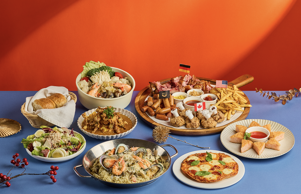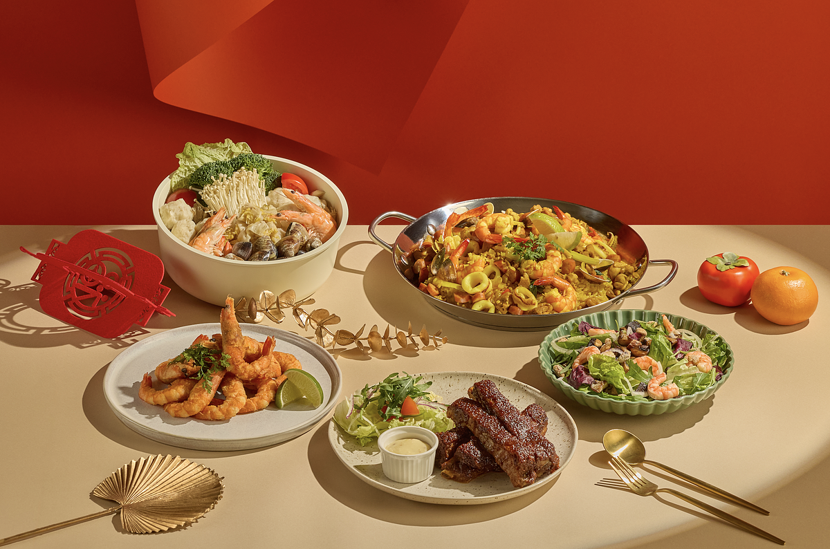 內用年菜套餐以經典 × 海味 × 拼盤 × 鍋物完整呈現金色三麥的代表性風味。清爽開場的尼斯沙拉、象徵好運的黃金蝦餅,到香辣濃郁的咖哩蟹、經典大拼盤的澎湃氣勢,以及象徵豐盛圓滿的酸白菜鍋,每一道都承載節慶寓意。主食可選擇剝皮辣椒鮮貝燉飯或西班牙海鮮燉飯,讓團聚餐桌更加滿足。整套套餐象徵「好運全開、好味滿桌」,豐富餐點適合6位家人朋友一同享用。