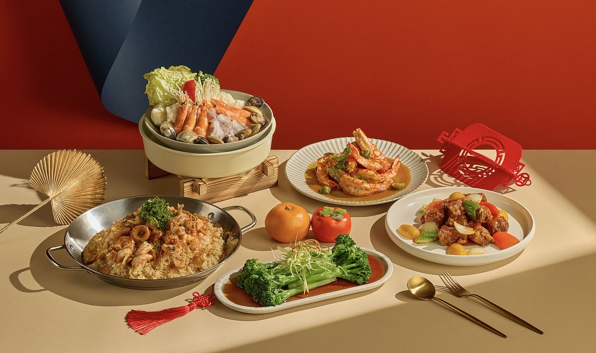 以青花筍、大桔大利酸辣蝦、金棗肋排、海派燉飯與金湯鍋構成層層堆疊的節慶味覺旅程,從清爽開胃到濃郁暖心,一次滿足團圓桌所需的豐盛感,適合4位家人朋友享用。