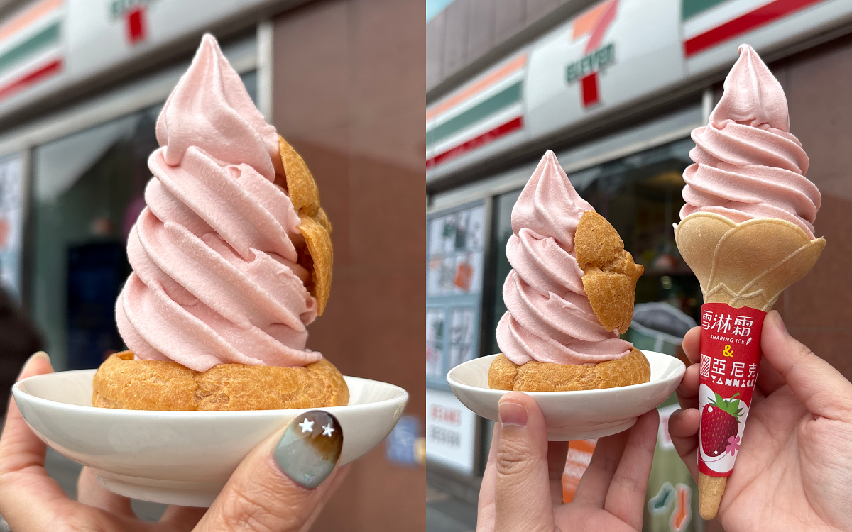 7-ELEVEN 這回攜手亞尼克推出「甘王草莓卡士達霜淇淋」,酸甜草莓搭配奶香濃郁的卡士達醬,整體甜而不膩,且草莓香味十分突出。另外還可加價購10元升級成成「泡芙霜淇淋」,外皮酥脆內裡鬆軟簡直太犯規了!