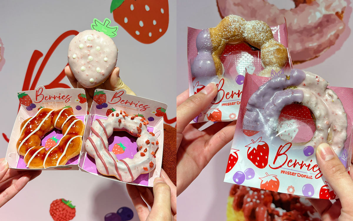 Mister Donut 冬季應景的香甜草莓系列來了!結合藍莓及覆盆莓等3種莓果,搭配Q彈草莓波堤、歐菲香、法蘭奇、巧貝及當紅生系列的波波隆尼、生波堤等6款圈體,排列組合出高達9款甜甜圈新品,同時加碼兩款草莓季飲品。人氣生系列也推出草莓風味,「草莓優格生波堤」以柔軟綿密的生波堤裹上濃郁草莓醬,並點綴優格可可線條,營造出可口的透亮果汁感;「草莓波波隆尼」將鬆軟、微Q的爆餡甜心「波波隆尼」,搭配香甜的草莓果餡卡士達,每一口都有鬆軟口感及滿滿內餡的滿足!