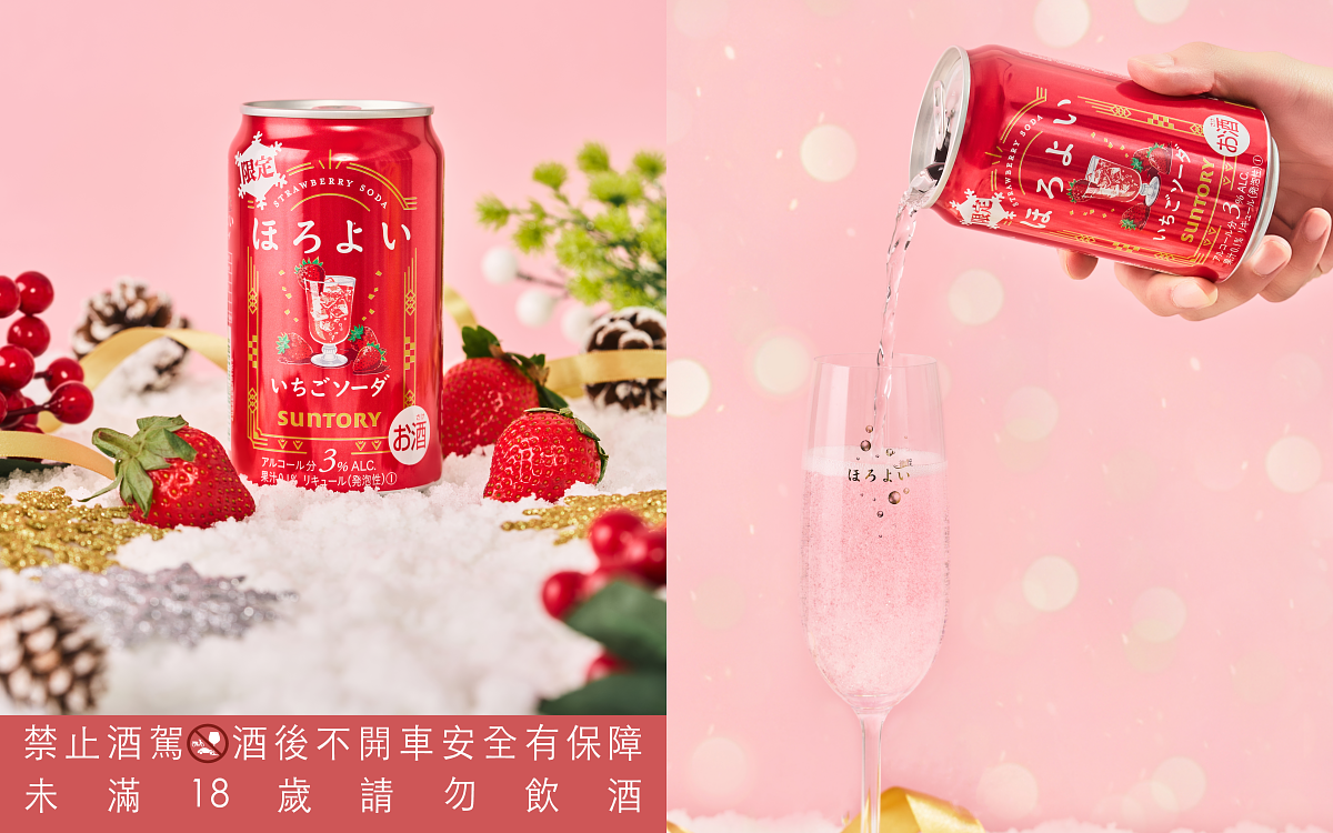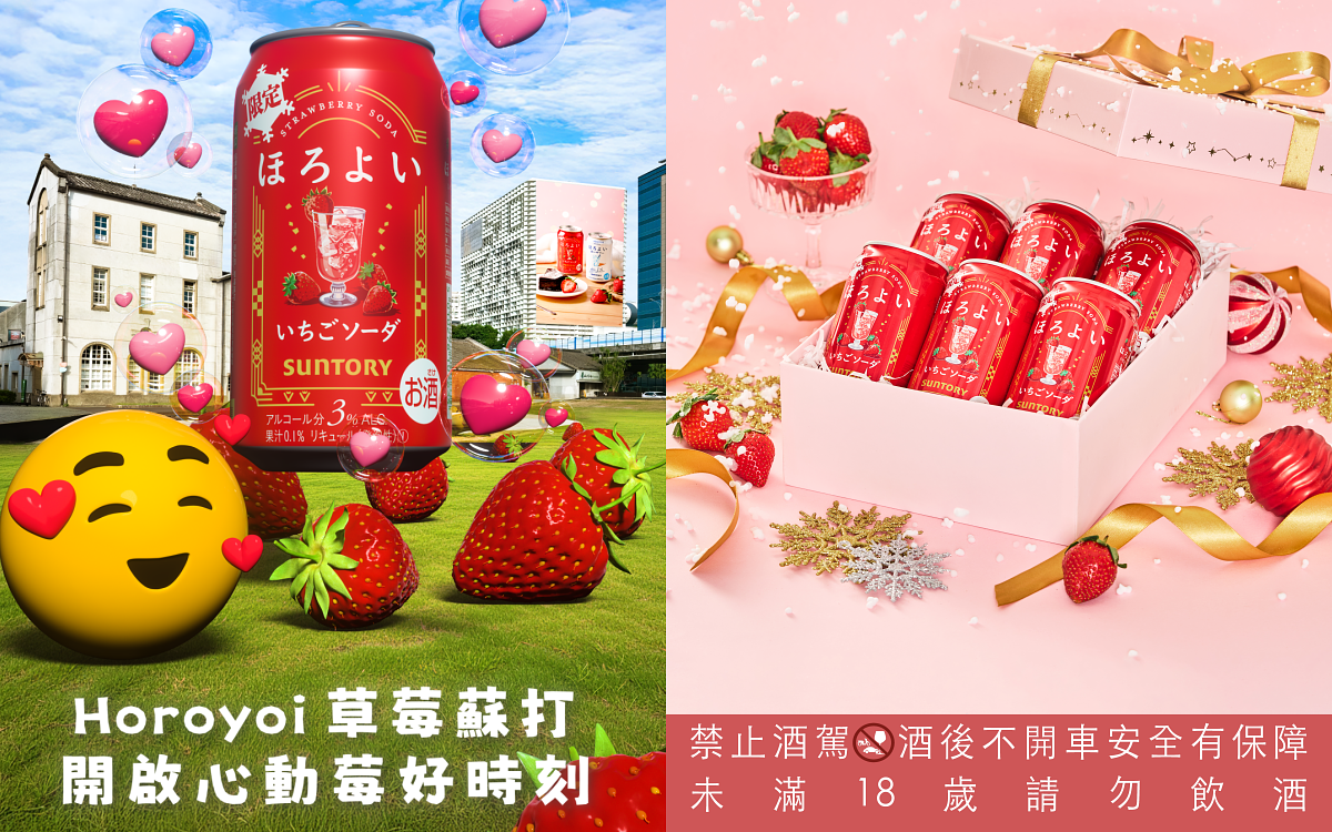 冬季草莓季來臨,Horoyoi微醉以全新「草莓蘇打」風味揭開城市心動篇章,以清爽氣泡與柔和草莓香氣作為味覺開場,3%低酒精帶來剛剛好的放鬆餘韻,無論是好友聚會分享近況、與戀人、曖昧對象共享冬日「莓」好時光、或沉浸專屬自己的小確幸時刻,Horoyoi微醉鼓勵每個人自在享受生活,打造專屬的「微醉日常(Horoyoi Moment)」,把心動留給最想停留的瞬間。