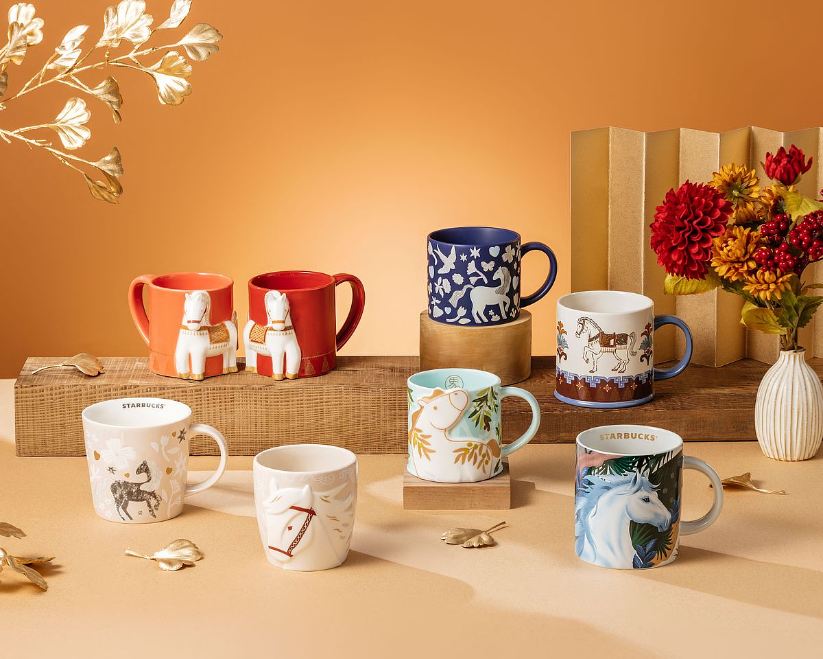 星巴克典藏 DREAM PLAZA 台北門市同步推出三款充滿祝福寓意的馬克杯,包含「馬躍青雲馬克杯」、「金馬走春馬克杯」和「馬報春輝馬克杯」。設計融合傳統年節吉祥象徵,以珠光釉料、金屬貼花等工藝美學呈現,透過奔躍、走春與迎春等意象,傳遞步步高升、喜迎新歲與萬象更新的美好祝願。無論自用或送禮,皆為新年時光增添一份典藏質感與滿滿好運。