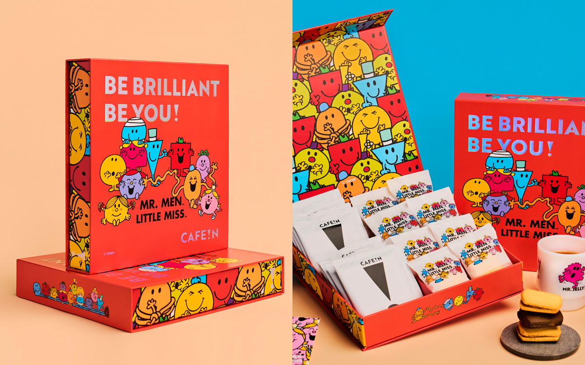 CAFE!N 帶來年度精彩壓軸合作,攜手英國經典童書《奇先生妙小姐》Mr. Men Little Miss,以角色的鮮明個性、幽默感、標語到可愛圖像,打造陪伴迎接新年的快樂體驗。本次企劃以 「Be Brilliant Be You」 為核心精神,延伸至咖啡體驗、新品輕食、聯名商品,以及期間限定的外帶包裝,同時,全門市亦換上角色繪本主題櫥窗,與大家一起歡度跨年與農曆新年。