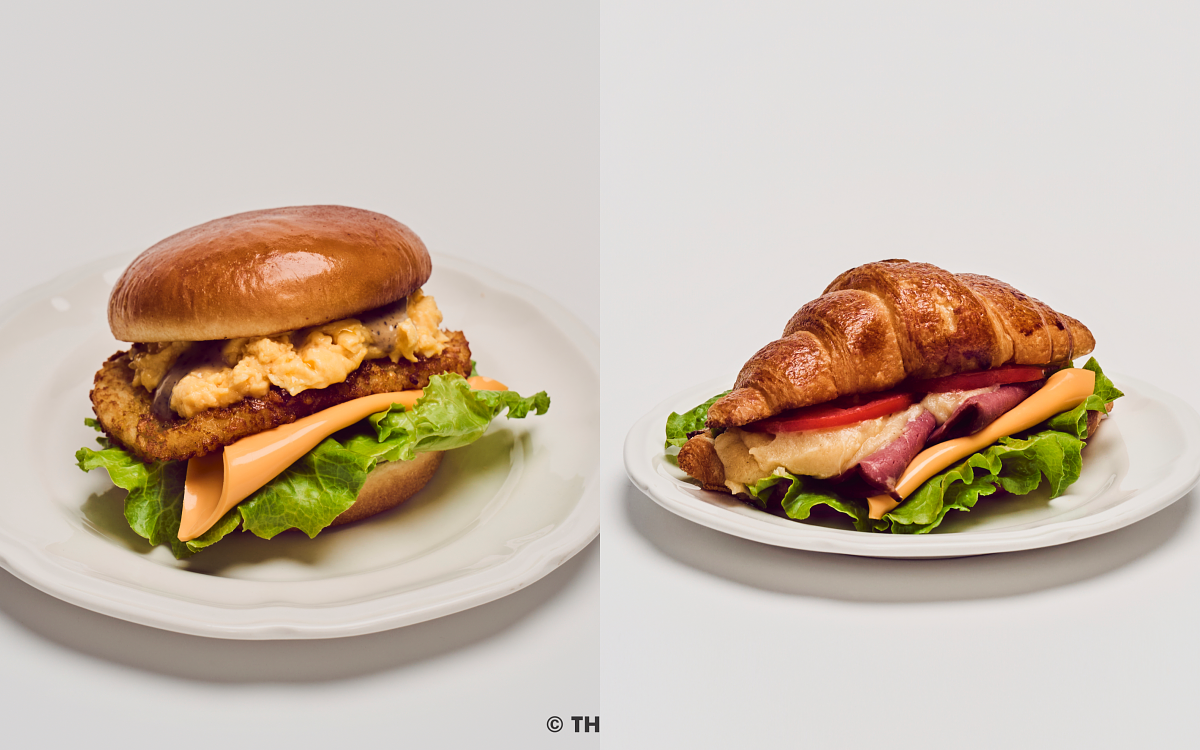 黑椒薯餅嫩蛋堡、薯泥牛肉可頌堡