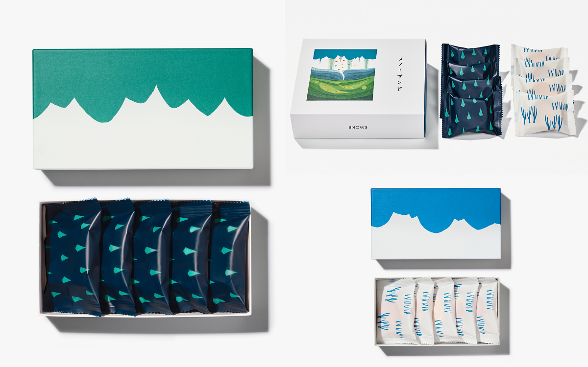 SNOWS 包裝插畫選用日本知名版畫家大谷一良先生(1933–2014)的作品。大谷先生自1980年代起持續舉辦個展,其作品多描繪山景與自然風貌,呈現「記憶中的北海道山景」。2019年品牌籌備期間,團隊於AlpMuseum(北之阿爾卑斯美術館)與其作品相遇,與SNOWS所追求的「屬於冬季的甜點」意象高度契合,遂成為品牌包裝的重要視覺元素,展現北海道雪國的靜謐與浪漫。