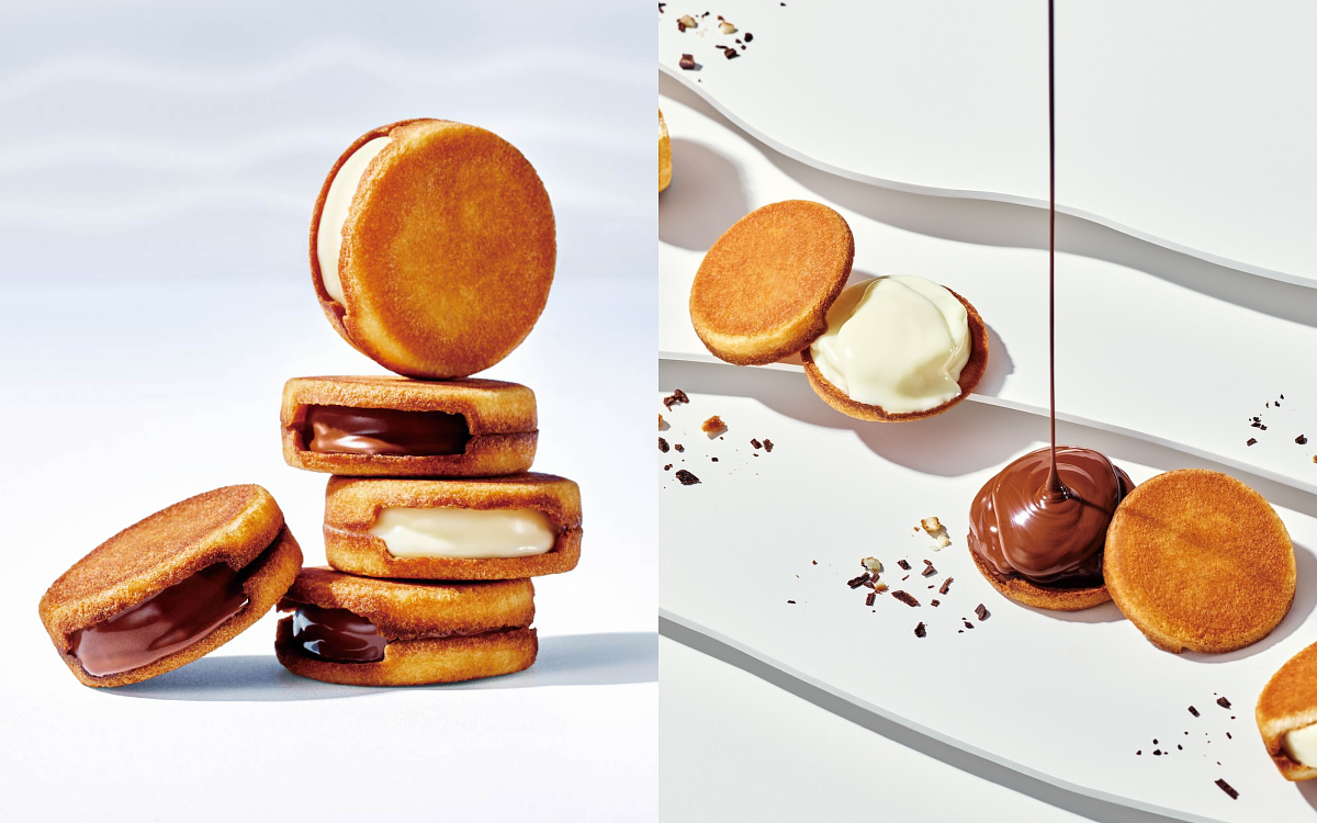 每到冬季皆掀起搶購熱潮的「SNOWSAND生巧克力夾心餅乾」,以鐵板煎製的酥脆餅乾,散發淡雅奶油香氣,夾入北海道放牧牛乳製成的生巧克力,入口先脆後融,酥香與柔滑交織,是最具代表性的經典之作。