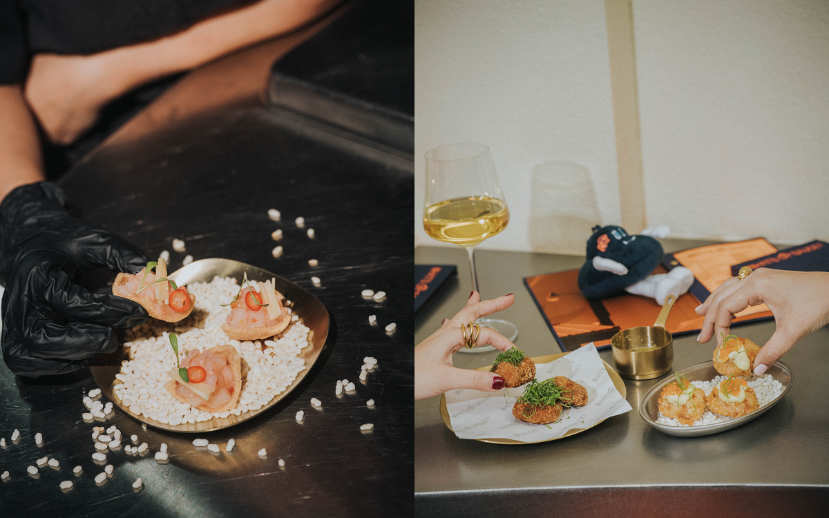 WLS Finger Food 系列以奢華食材與 fine dining 擺盤揭開序幕,包含生牛肉韃靼、酸辣生醃蝦,以及細膩呈現的鮪魚銅鑼燒,展現精緻餐飲的節奏與細節,為整場用餐奠定質感基調。