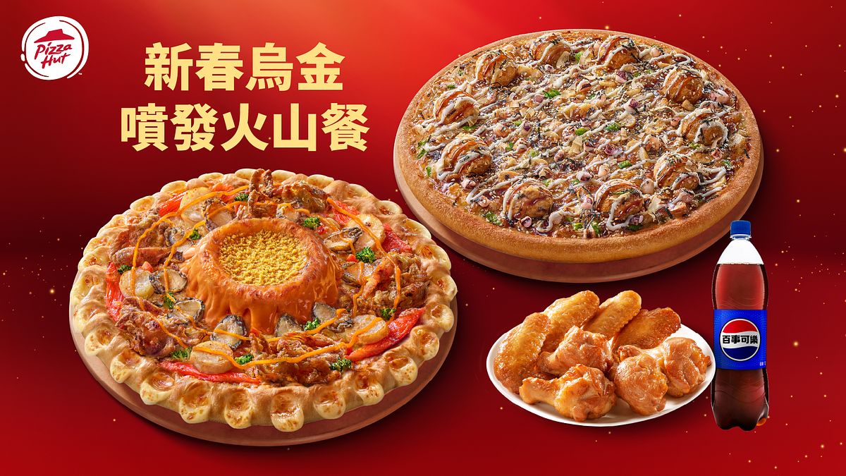 今年必勝客更再度打破食材框架,將年菜中常見的海中黑金「烏魚子」融入起司,讓台式經典年味在火山熔岩中奢華噴發!搭配「五重起司」交織的極致風味:除了經典的莫札瑞拉、帕瑪森與切達起司,再添加口感如奶油般綿密的康門貝爾起司及帶有淡淡果香的帕達諾起司,賦予層次分明的熟成乳香。熱騰騰熔岩起司伴隨著烏魚子特有的醇厚香氣,一口咬下瞬間溢出,不僅是極致的味蕾享受,更寓意新的一年財源滾滾!今年春節圍爐,就點「金皇軟殼蟹鮑魚比薩」加購升級「金饌烏魚子火山熔岩餅皮」!餅皮加購原價 249 元,1/20–2/9早鳥優惠價只要 219 元;多人聚會也可選擇「新春烏金噴發火山餐」,內含「金皇軟殼蟹鮑魚大比薩」並免費升級「金饌烏魚子火山熔岩餅皮」,再搭配第二個大比薩、副食六選一與 1.25L 飲料一瓶,只要1068元起,馬上享受最豪華的海鮮盛宴!