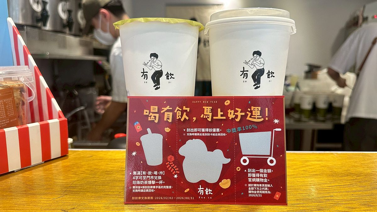 除了新春限定飲品登場外,有飲也推出非常應景的過年週邊,包含設計充滿巧思的品牌燙金春聯、可愛實用的春聯小貼紙,以及增添驚喜感的刮刮樂。