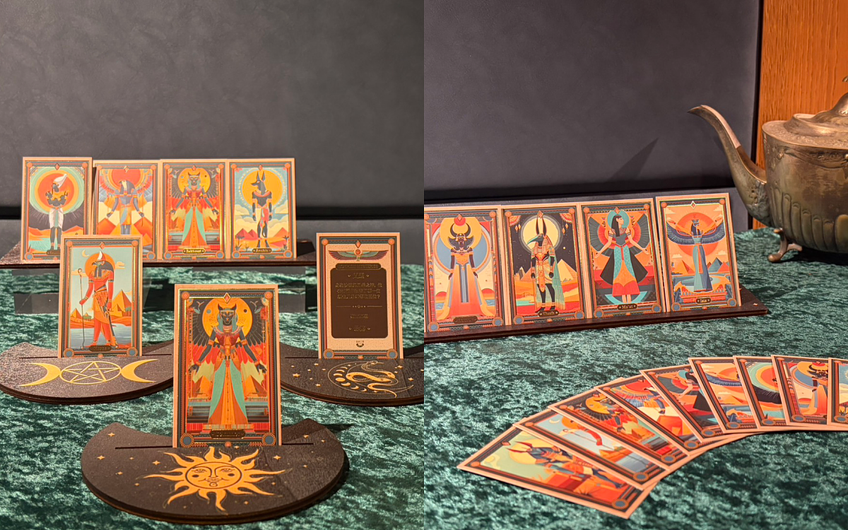 限定優惠1:消費任一道埃及主題期間限定餐點,即可獲得乙張款式隨機贈送的品牌獨家設計精美燙金埃及卡牌,全套共10款、送完為止。