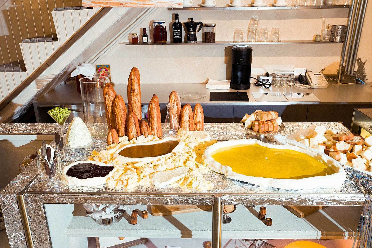 整個場域被打造成一座跨界實驗室:顯微鏡區——塔殼如同培養皿,可自由填入想要的餡料;試管區——調配專屬飲品、發現味覺的化學組合;層構室將經典提拉米蘇變成可堆疊的風味建築;沉浸室——用橄欖油、酒醋與巴薩米克醋製作「小水池」,以及麵包小山,象徵登入月球後的首次著陸。