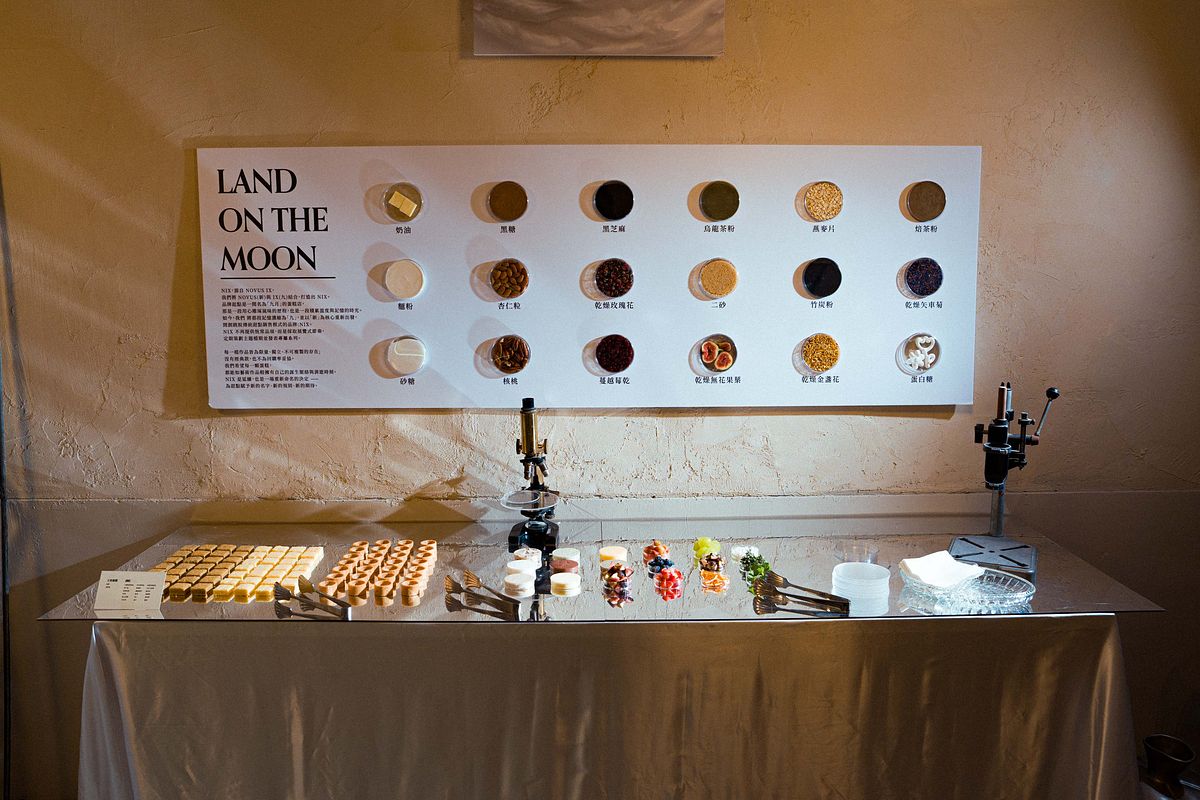 NIX 的誕生以一場以甜點為中心的沉浸式策展體驗,《月球背面的派對》開啟。在這個活動中,觀眾被邀請以「登月者」的身份,進入一個融合想像與味覺的未知宇宙。從 1F 的「登入月球準備站」出發,參與者可透過餅乾上的 QR Code 觸發語音與影音片段,走進一段前所未有的感官旅程。