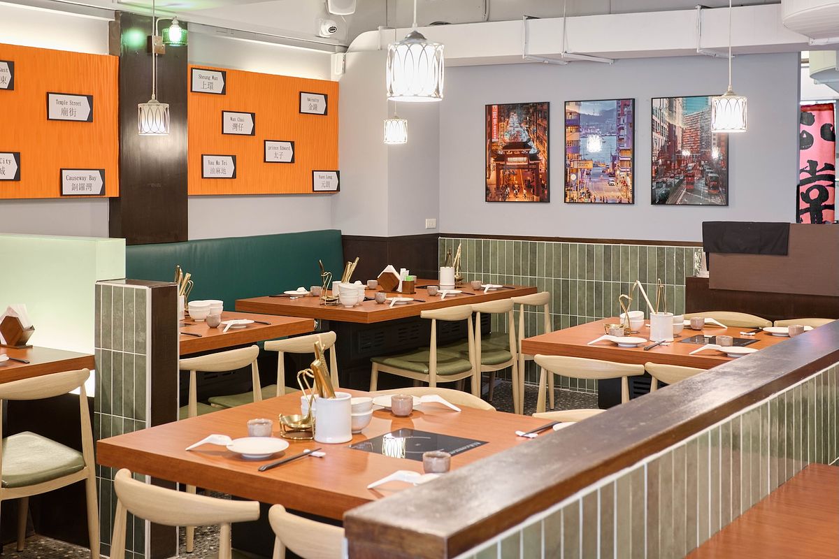 有別於兩間姊妹店的高端定位與私廚型態,「如嫦 卜卜蜆.港式雞煲」回歸街頭食堂的熱鬧本色,品牌定位更加親民,將高品質鍋物融入日常生活。品牌名稱則延續「如+女字部」的優雅傳統,「嫦」字則隱含「常來嚐」的諧音,寓意人人都能自在享受、常常光顧,無論三五好友聚餐、或是一人獨嚐,都是如嫦所想傳遞的自在美味日常。同時也象徵「如嬌、如嫣、如嫦」共同攜手前行,持續為美食愛好者帶來細膩且美好的味蕾盛宴。在空間美學上,如嫦將港式大排檔與茶餐廳的靈魂搬進台北街頭,標誌性的綠皮沙發、復古磁磚,搭配閃爍的霓虹燈招牌,在光影交錯間復刻出極具韻味的港島印象。