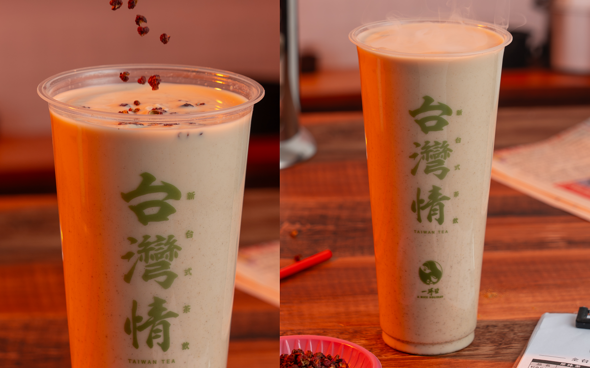 一沐日本次從風味層次出發,選擇加入過往鮮少出現在飲品中的感官元素「麻」入內。此次椒心系列選用雙重花椒入飲,以紅花椒的醇厚、青花椒的清香為基底,搭配熬煮蔗糖的溫潤甜感與烏龍綠奶茶的柔和茶韻,組合出一杯層次分明、溫暖順口的熱奶茶。全新「椒心系列」皆為大杯熱飲,並提供三段麻度選擇:全麻、半麻、微麻,讓消費者可依個人喜好調整風味強度。「椒麻奶茶」以濃厚滑順的口感為核心,入口先是烏龍綠奶茶溫潤的茶香與奶韻鋪陳,隨後紅花椒的醇厚麻感緩緩浮現,在舌尖留下細緻而持久的層次變化,麻香與茶韻交錯堆疊,溫暖卻不刺激,呈現深度與厚實感兼具的風味表現。「椒麻鮮奶茶」則以清新純淨的奶香為主軸,口感細緻柔和,青花椒的清香在其中輕巧穿梭,使整體風味更加輕盈平衡,麻感點到為止,讓花椒香氣自然延展,帶出更清爽、耐喝的層次感受。