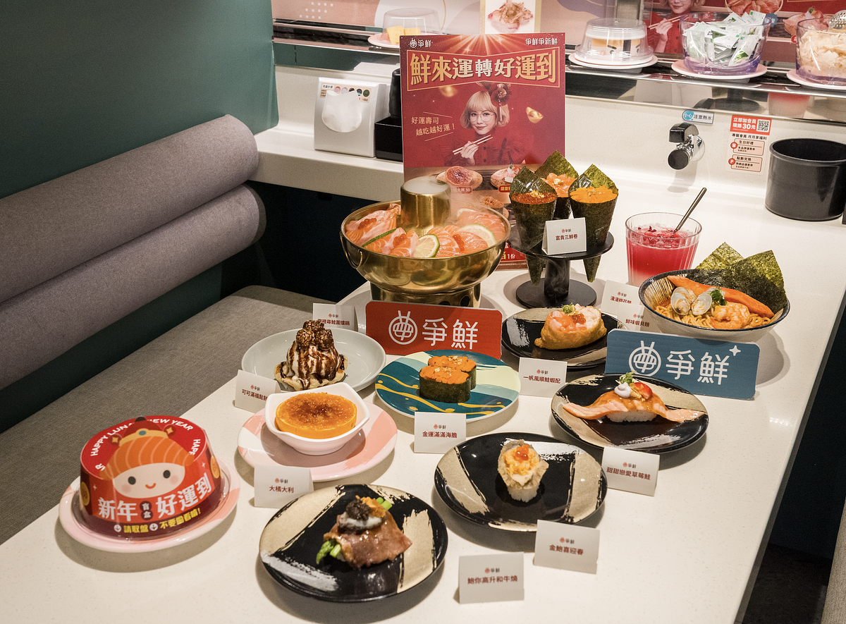 多達 11 款新品於爭鮮迴轉壽司及爭鮮 PLUS 限定開賣;2 月 3 日起限時加碼推出「好運盲盒」,每盤售價 30 元,可直接從迴轉台輕鬆拿取,最大獎有機會抽中「金箔」豪禮,全台門市限量販售,售完為止。蒐集金馬年好運勢,就到爭鮮!