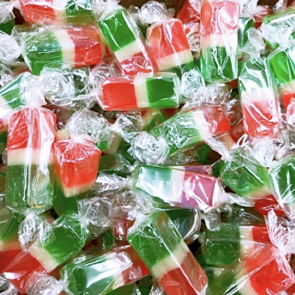 特色:紅、白、綠三色軟糖層層堆疊,Q彈可口,色彩繽紛。