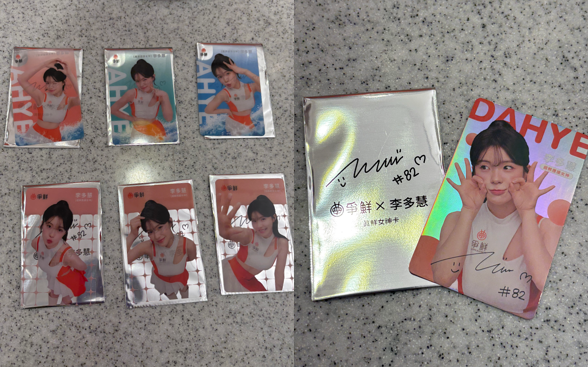這次更特別為李多慧粉絲打造了限量周邊,活動期間凡於爭鮮迴轉壽司/爭鮮PLUS點購「甜心馬卡龍炙鮭」、「韓辣和牛燒」或「開心果泡芙」,即可隨餐獲得限量「真鮮女神卡」一張;於爭鮮gogo購買「飯裡藏仙 女神主場秀」餐盒,即可隨餐獲得限量「真鮮女神卡」兩張,女神卡採隨機附贈形式,卡款於拆封時揭曉,為用餐體驗增添專屬驚喜,邀請粉絲完整蒐藏。卡款分為兩波段釋出,首波即日起至3月31日,第二波則於4月1日至4月27日加碼登場,每波包含3款質感透卡與1款極具收藏價值的隱藏版閃卡,隨機發放,讓蒐集過程更添期待。而凡點購「紅粉夾心蝦」或「韓風海味享」,則會隨蓋附贈專屬「女神插卡」,將李多慧的甜心魅力化為隨身收藏。