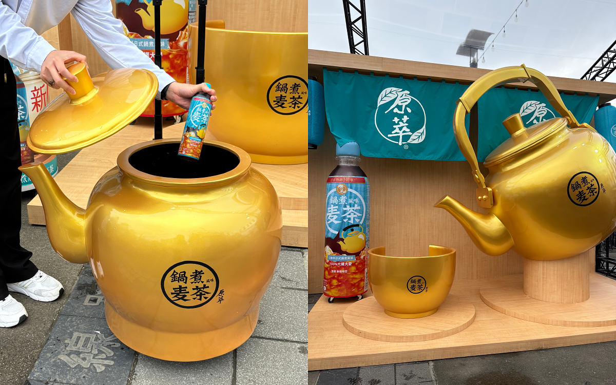 為邀請民眾親自體驗「原萃」鍋煮風味麥茶的經典風味,「原萃」同步啟動線下與線上活動。凡完成指定步驟,即可獲得「原萃」鍋煮風味麥茶,現場更設置五公尺高的巨型 YAKAN 金色茶鍋裝置,邀請消費者親臨拍照打卡,以味蕾感受「原萃」鍋煮風味麥茶的純正滋味!