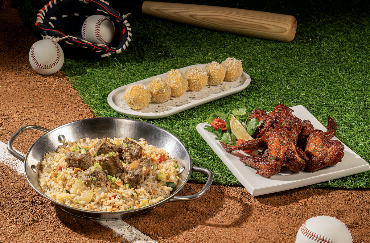 SPORTS NATION 運動餐廳台中漢神洲際店此次也同步推出限定菜色,為新店增添話題亮點,從下酒炸物到主食,都進一步強化品牌觀賽配美食的完整享受。其中,「東泉爆擊辣雞翅」以台中著名的東泉辣椒醬為主角,酥香外皮包覆鮮嫩肉質,鹹甜交織的濃郁東泉辣椒醬香,越吃越涮嘴,是最適合搭配啤酒與熱血賽事的經典開場。「芋泥轟炸起司球」則巧妙融入台中代表性的大甲芋頭元素,外酥內綿,包裹濃郁起司內餡,鹹甜交錯、層次豐富讓人停不下來。而「豐原排骨酥義式燉飯」則以經典古早味豐原排骨酥為靈感,排骨酥結合米飯香氣,層層堆疊出排骨香、鍋氣與滿足感,呈現與在地感中西合璧的豐富主食選擇。