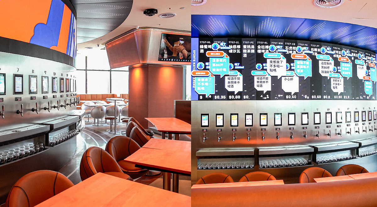 得到台灣專利的 SPORTS NATION 全球首創電子酒精交易所結合自助智慧取酒牆,一直是品牌最具代表性的招牌體驗。顧客可憑儲值卡自由選酒、自助拉吧,從頂尖調酒師監修的經典調酒、無酒精氣泡飲到特選精釀啤酒,都能依照自己的節奏與口味自由探索。靈感來自股市交易概念,透過動態螢幕與智慧取酒牆結合,每款酒的價格都會依照即時銷量產生股市般的漲跌波動,越多人取用的酒款價格越高,漲幅最高可達 120%,若半小時無人取用,價格便會下跌 4%,最多甚至下殺至半價,讓喝酒這件事多了更多刺激、互動與趣味。