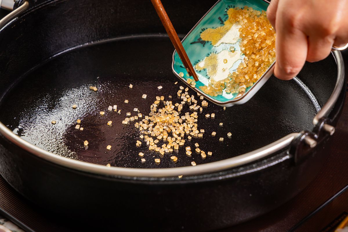 圖片來源:祇園.禪院 提供「祇園.禪院壽喜燒專門店」承襲日本職人對細節的堅持,首創依個人喜好挑選糖品,備有中雙糖、三溫糖與白雙糖3款風味,各自描繪出不同層次的味覺記憶。其中琥珀色的中雙糖,質地輕盈,隱隱透出一抹溫潤的焦糖香;三溫糖則帶著更深沉的甜韻與熟成氣息,適合偏愛濃厚風味的饕客;白雙糖純淨清透,讓食材本身的鮮甜更加分。