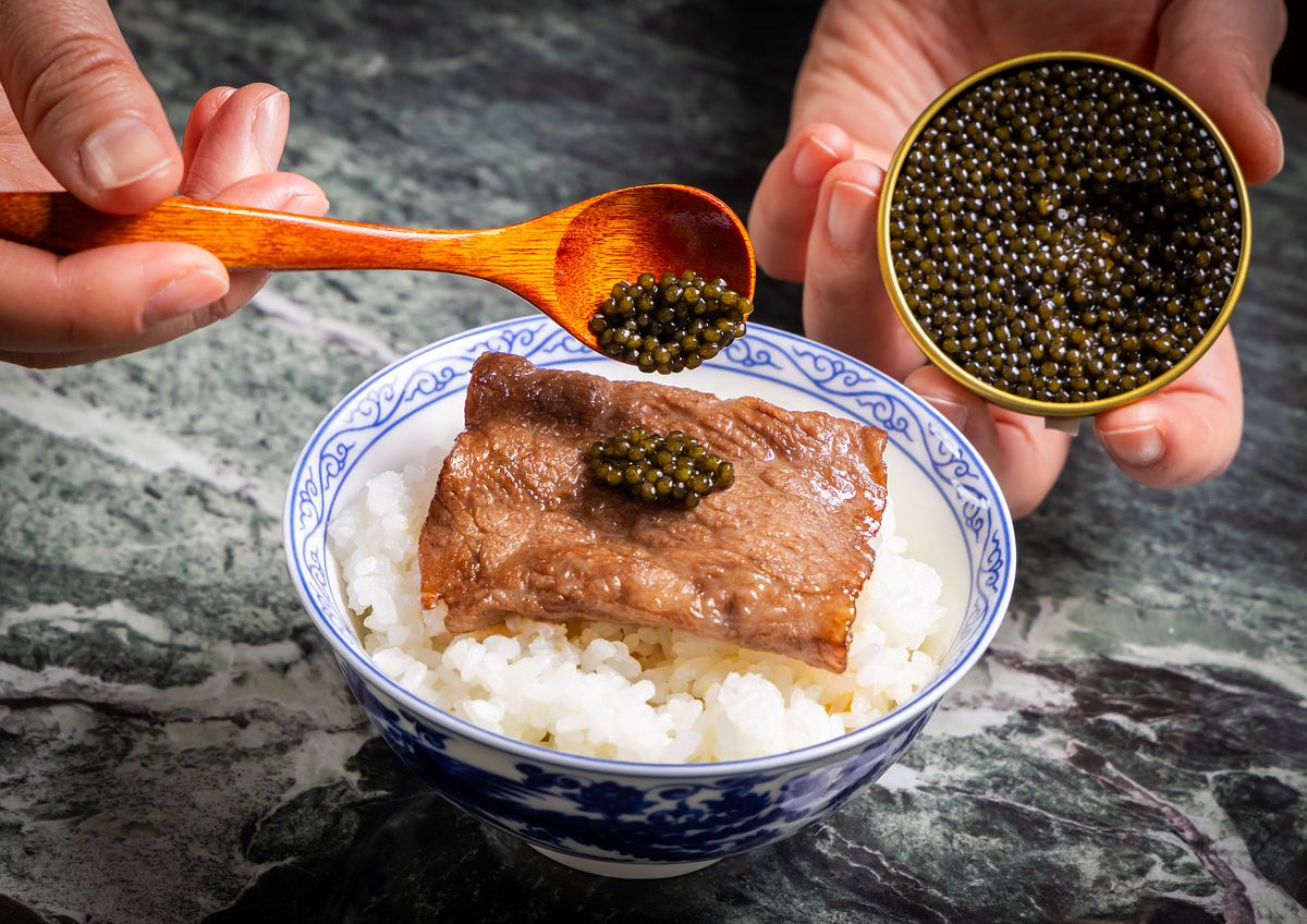 對於講究風味的饕客,可加點升級「雲丹帝王蟹柿種」與「千島湖奧賽嘉魚子醬」。招牌「雲丹帝王蟹柿種」以香脆柿種米果為底,襯托帝王蟹肉的鮮甜與海膽的香醇,海味在口中完整綻放,令人回味無窮。「千島湖奧賽嘉魚子醬」則為和牛增添點睛之筆,熱騰騰牛肉覆上一勺晶瑩魚子醬,鹹香海韻與油脂交融,堆疊出豐富的味覺層次。