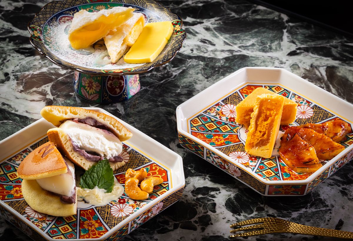 甜點控必嚐「手工港式芝士豆腐奶」,以豆漿製成的炸鮮奶,內餡夾入濃郁巧達起司,出餐前輕灑細緻糖粉,熱騰騰的豆腐奶香氣四溢。建議先從原味品嚐,再搭配冰鎮奶油,冷熱交融,層次瞬間綻放。「日式紅豆麻糬銅鑼燒」美味秘訣在於軟Q鮮奶油麻糬,尾韻的紅豆甜香縈繞不散。「禪院手工鳳凰酥」佐以烘烤風乾鳳梨,獨特的香甜來自撒糖炙燒後的果香,濃郁迷人。