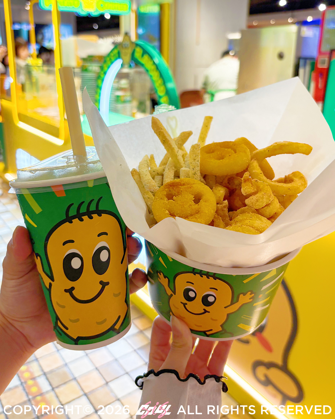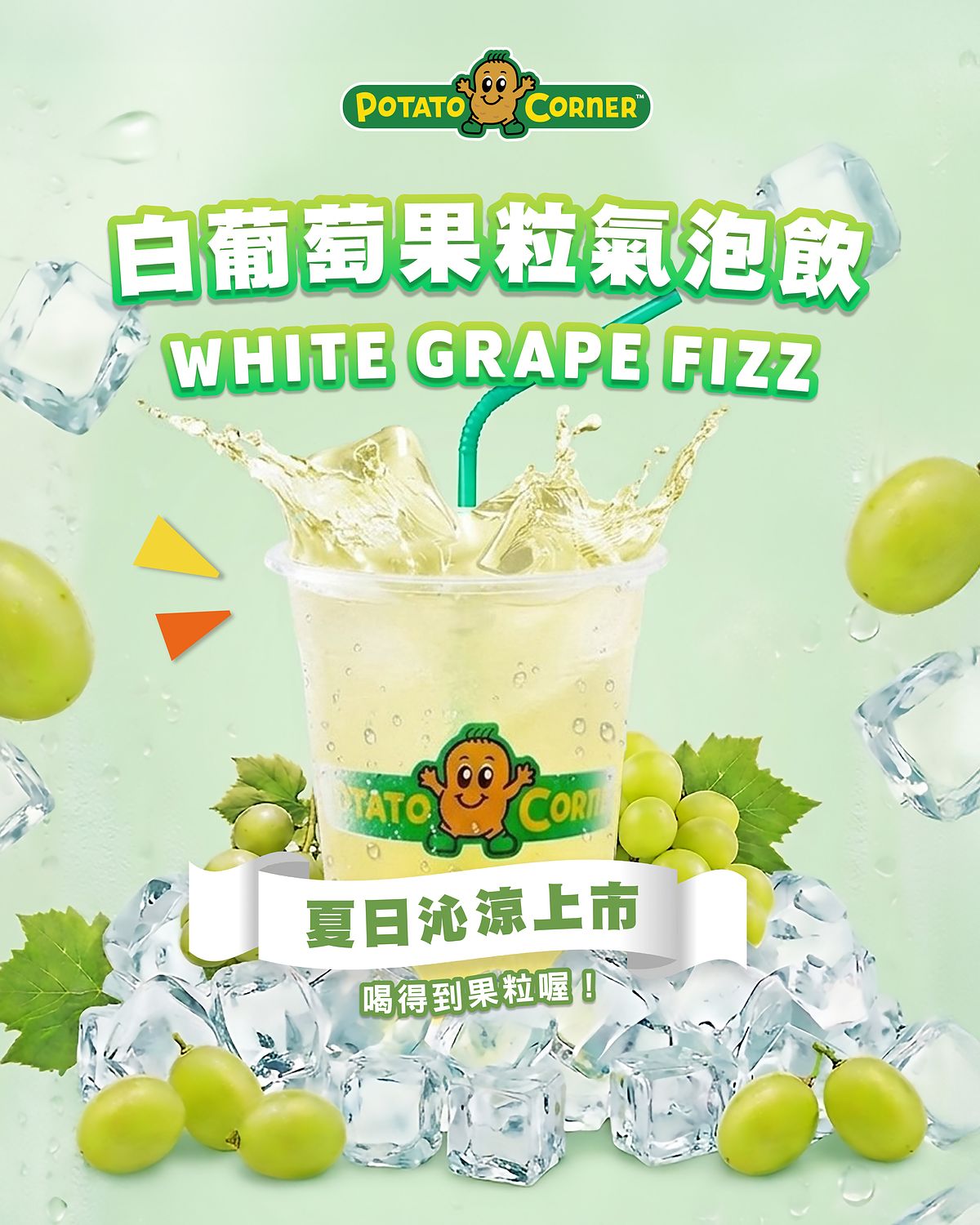 同場加映的還有「白葡萄果粒氣泡飲」,以清爽果香結合細緻氣泡,入口不僅沁涼解膩,還能喝到真實果粒,為整體口感增添層次。搭配現炸薯條享用,無論是午後小確幸或逛街補給,都再適合不過。