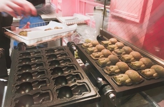 全台首間的LINE FRIENDS Café以外帶店形式登場,除了固有的各式冷熱咖啡、香味四溢的草莓口味熊美爆米花,為了帶給台灣全新不同的食感體驗,韓國總部與台灣團隊共同討論,經過嘗試後,在品項推出了韓國當地或是其他國家都沒有的特殊口味:夾有香濃內餡的抹茶風味熊大雞蛋糕、滑順可口並且融合台灣在地食材的青蛙蛋粉圓奶茶、以及國人接收度屬高的日月潭紅玉紅茶、台灣鮮奶紅茶等。這些品項的外型頂著高度吸睛力,卻仍同時兼具高等級的美味度,讓人為之驚豔。Café目前以女性最愛的甜點為主打項目,這樣的供應模式似乎也同時呼應了CHOCO熊美愛吃午茶甜食的個性,別具趣味!