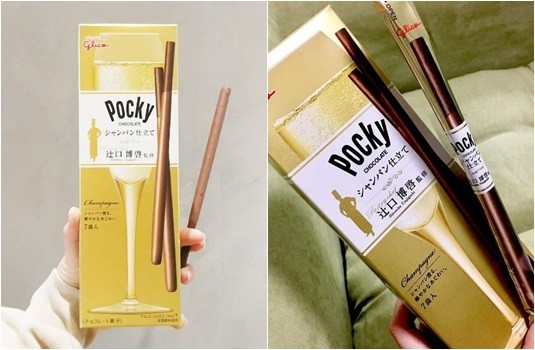 固力果在今年1月3日起由甜點大師辻口博啓監修推出「期間限定」的「香檳巧克力」系列,包含比普通版長1.4倍的「大人系Pocky」、Almond Premio杏仁巧克力、Caplico甜筒餅乾三款,他在這些甜品中都加入了法國香檳,散發著迷人的風味,包裝也都是香檳金色的高級奢華感,讓人一看就忍不住手滑~