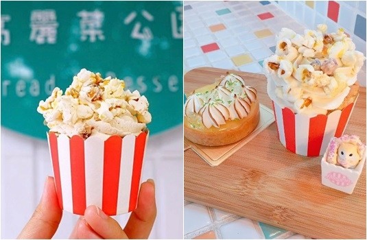 整間店有著日系雜貨的可愛風格,光店面外頭就是女孩必拍的背景牆,店內提供超多看起來十分迷人的甜點,每樣都想點來吃看看!特別是「高麗菜電影院」這款甜點,跟名稱一樣超有創意,在小巧可愛的杯子蛋糕上,佈滿像一顆顆像高麗菜的爆米花,還使用福源花生醬提味,看著超可愛吸睛,聽說口感很豐富又好吃呢!另外網友都表示這家店的麵包很強大,V編好想翹班衝去帶幾個回家邊看劇邊享用喔!(笑