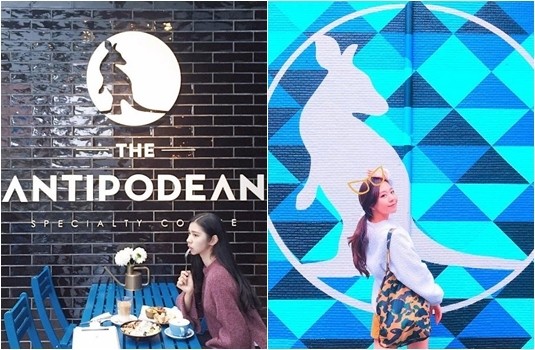 正如店名Antipodean 的意思(形容和澳洲、紐西蘭有關的人或事物)一樣,這間咖啡館主要以紐西蘭、澳洲的風格呈現,整體空間讓人覺得非常悠閒自在,店外藍色調的幾何圖案牆與白色袋鼠標誌,是必拍又吸睛的特色牆!拍起來既童趣又清新,就好像紐澳給人的自然、奔放的輕鬆氣息,而入口處的黑色磁磚牆,搭上藍色桌椅更是所有客人不會放過的打卡處!