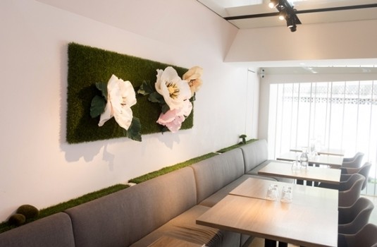 整間店的構思,從餐點設計到用餐環境都是以女性為出發點發想企劃。這些女性已經不再是小女孩了,她們明白自己想要的是什麼,重視自己的生活品質,也懂得品味。於是在空間用色上,收入眼底的是沉穩中帶有溫柔感的灰×粉×白,大片的落地窗讓陽光自然灑落,讓每一位走入店內的用餐者在尚未入座前就放鬆了起來,也對接下來的用餐時光充滿期待。