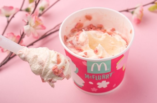 完全讓和菓子等不了第二天的期間限定日本麥當勞「櫻花飄雪冰旋風」,就連呈裝的杯子也要有著盛開櫻花的模樣。
