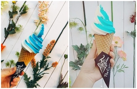 店內每天推出2~3種獨特風味手作霜淇淋,像是藍白相間的是超人氣「藍鯨霜淇淋」是由藍柑橘+蜂蜜香製成,每天去店上都有不同口味可以挑選~所以想吃到指定口味還得碰碰運氣,最棒的是店內以乾燥花佈滿整體牆面,讓大家吃冰前一定要先來張唯美浪漫的美照~