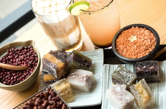 每到了夏天,受到豔陽與高溫的影響,產生的燥熱讓身心變得煩躁不安,甜膩的甜點根本讓人無法產生興致,這時候就會想起常在傳統市場現身的涼糕與涼圓,彷彿就是因應夏季誕生的甜點,輕盈透亮的外型讓人看了就覺得舒爽!而「涼食帖-涼菓咖啡館」為涼糕與涼圓這樣的傳統糕點賦予了全新的意象,發揮了店家循古的製菓技藝,將傳統食物化身為嶄新的時尚面貌,「涼菓子」因而誕生。以樹薯粉調和炊蒸而成的Q彈外皮,包覆著天然食材製成的鬆軟內餡,無論是外型或是口感都有出色的層次。改變過往涼糕與涼圓無法久放的問題,涼菓子只須放於冷藏,便可將最佳賞味期限延長至3天。