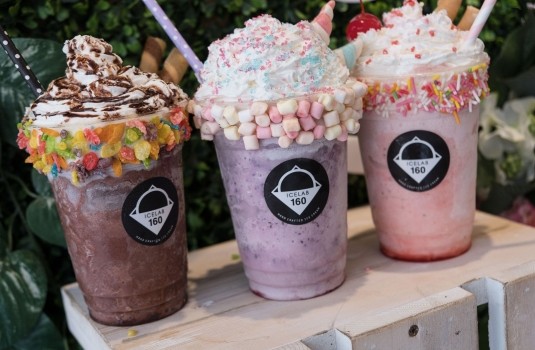 最新推出的夢幻奶昔共有3個口味,以3種夢幻色系吸引女孩們的目光~!粉紫色的藍莓獨角獸,由新鮮的藍莓果粒加入自製的香草冰淇淋打成奶昔,奶昔上方撒上彩色紅色與藍色糖粒,完美詮釋獨角獸的色澤。粉紅色的草莓之戀,粉色與紫色糖粒,加上愛心糖片增添戀愛氛圍。咖啡色的熱情巧克力,以巧克力粉與香草冰淇淋打成的奶昔,上方撒上阿華田碎片,再以水果玉米片增添夏天海灘的氣息。只要夢幻奶昔一上桌,沒有人能抗拒得了拍照打卡的衝動~!